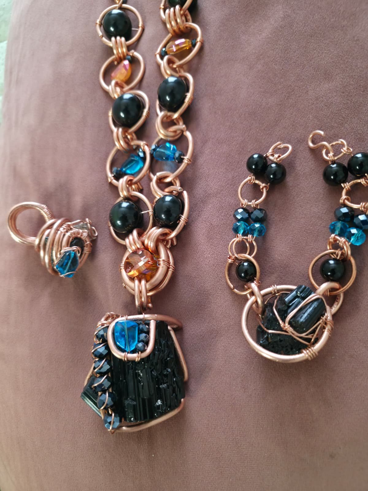 This handcrafted copper “Protection & Power” collection is an elite example of maximalist artisan jewelry. More than just a set, this is a wearable fortress of energy, meticulously forged for those who command attention and value the raw, unyielding power of the earth.
