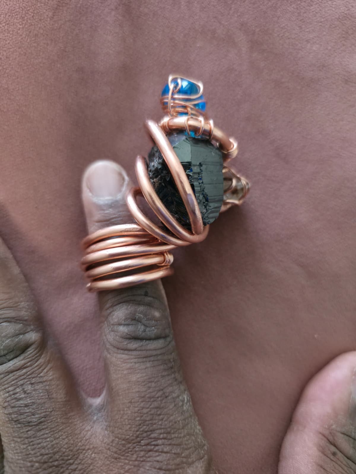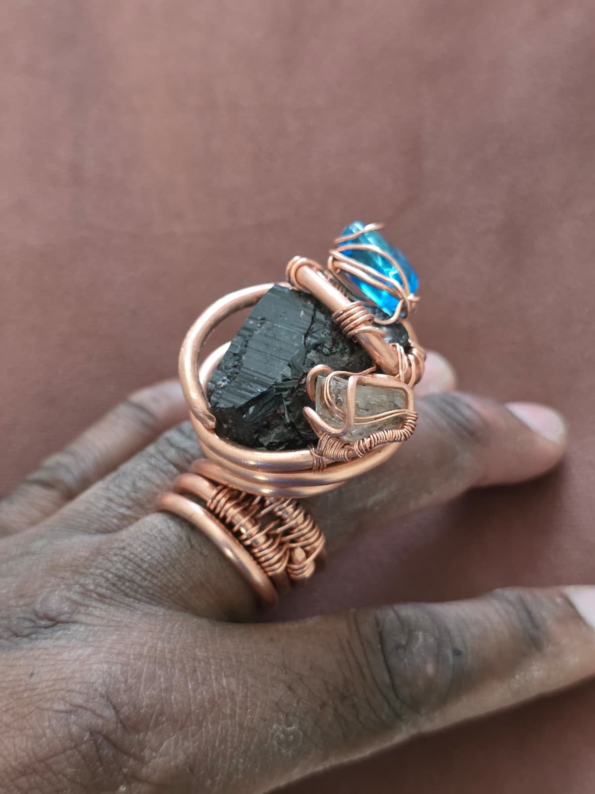 - Artisan “Cage” Weaving: Each piece is hand-bound in heavy-gauge, industrial-purity copper. Using “Paleo” wire-weaving techniques—no solder, no glue—every swirl and coil is a testament to mechanical mastery, turning raw metal into a sophisticated, structural exoskeleton for the stones.