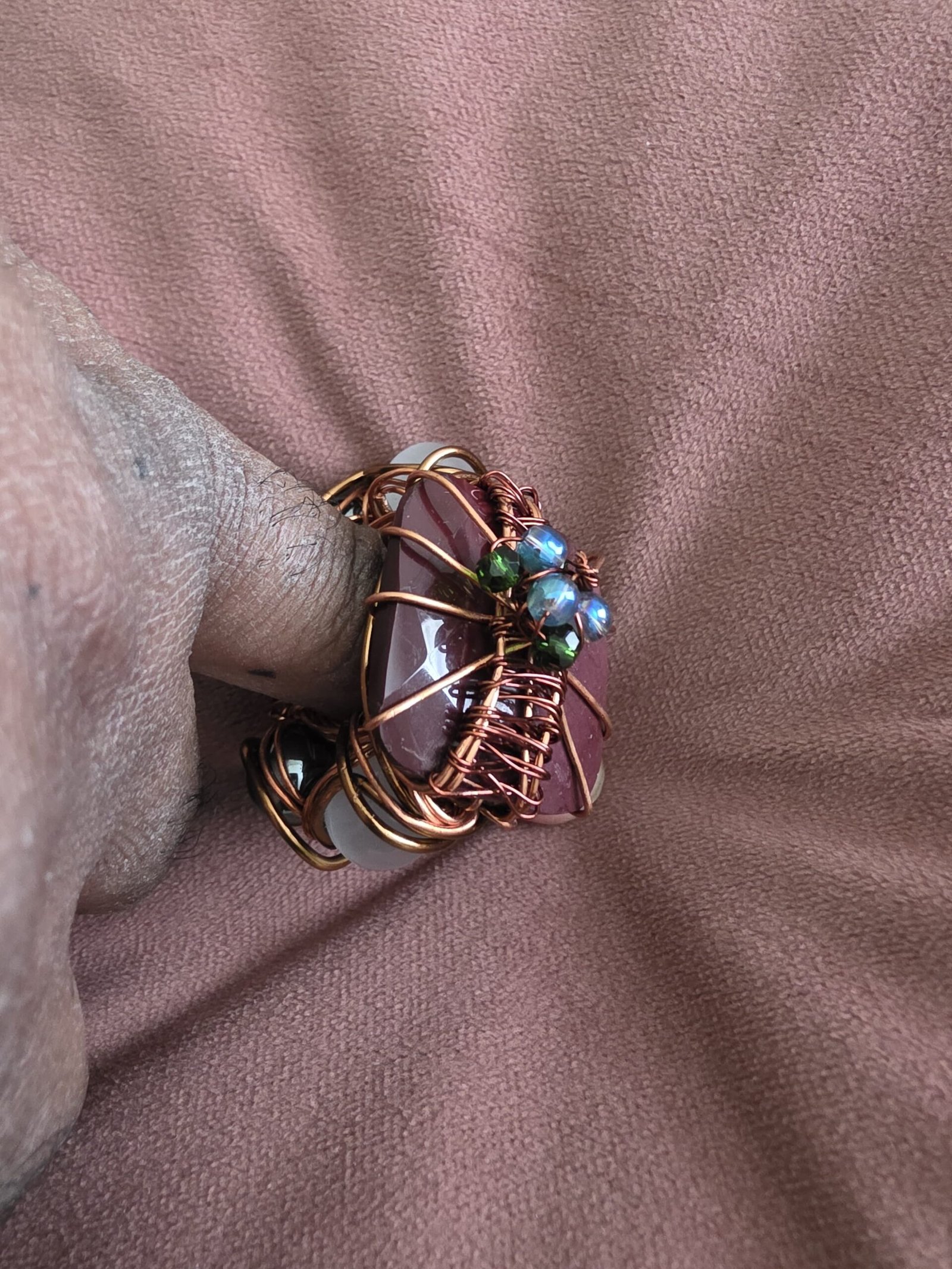 Copper Jewlery design such as oversized chunky rings, necklaces, pendants and bracelets. One of a kind pieces. High quality craftsmanship, full of color and life.