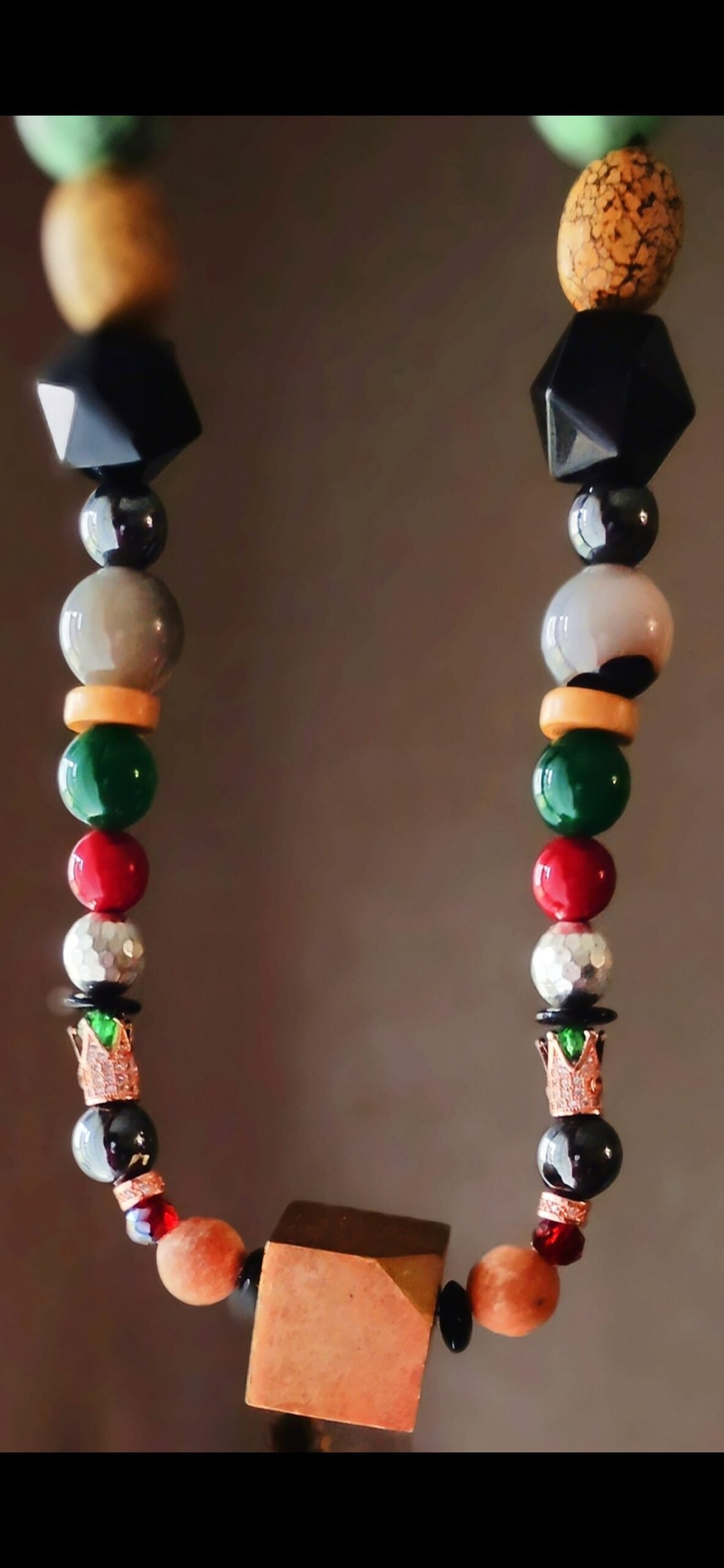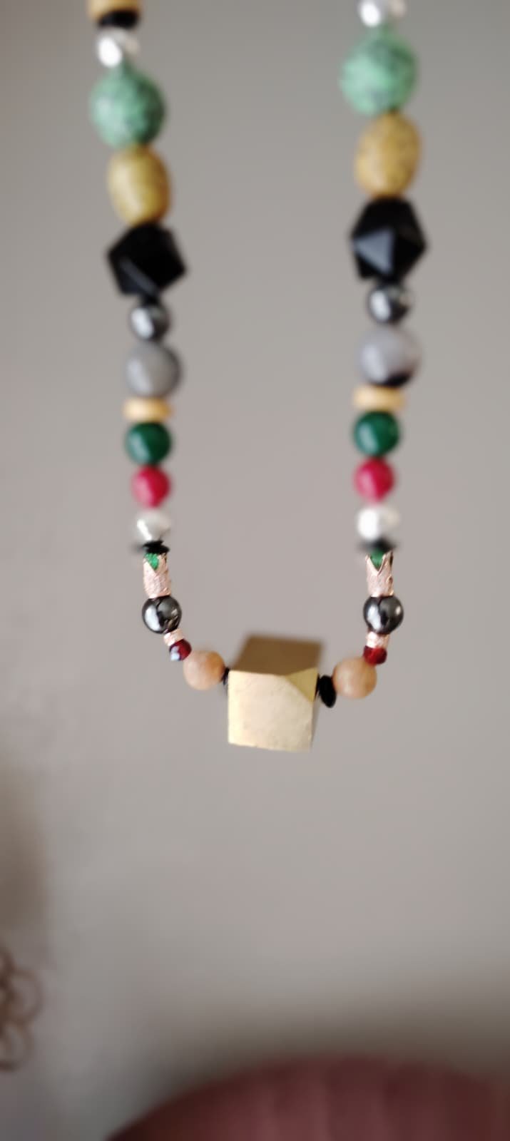 Solid brass square pendant is the fical point of thus evkSoliThis vibrant multi-color handmade Kente inspired style Necklace featuring,
