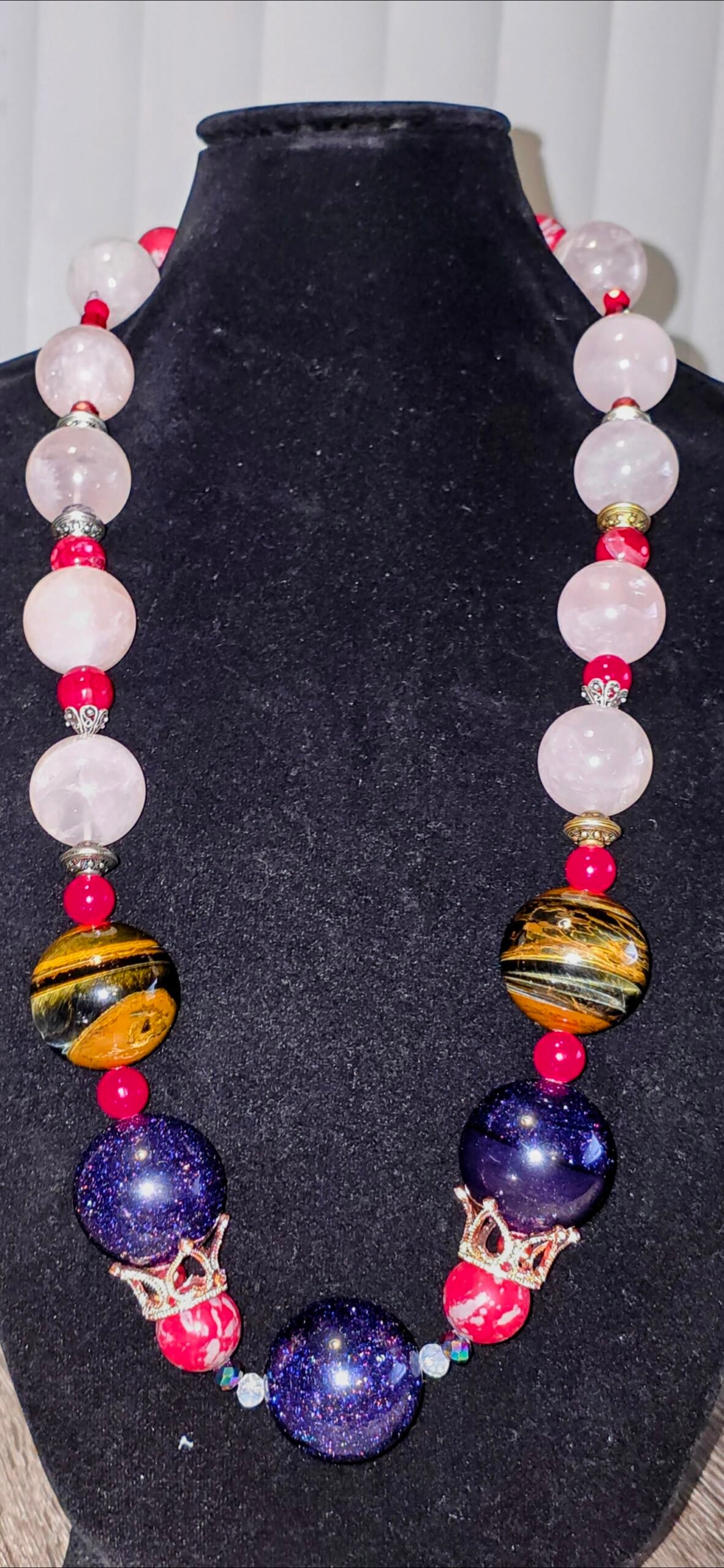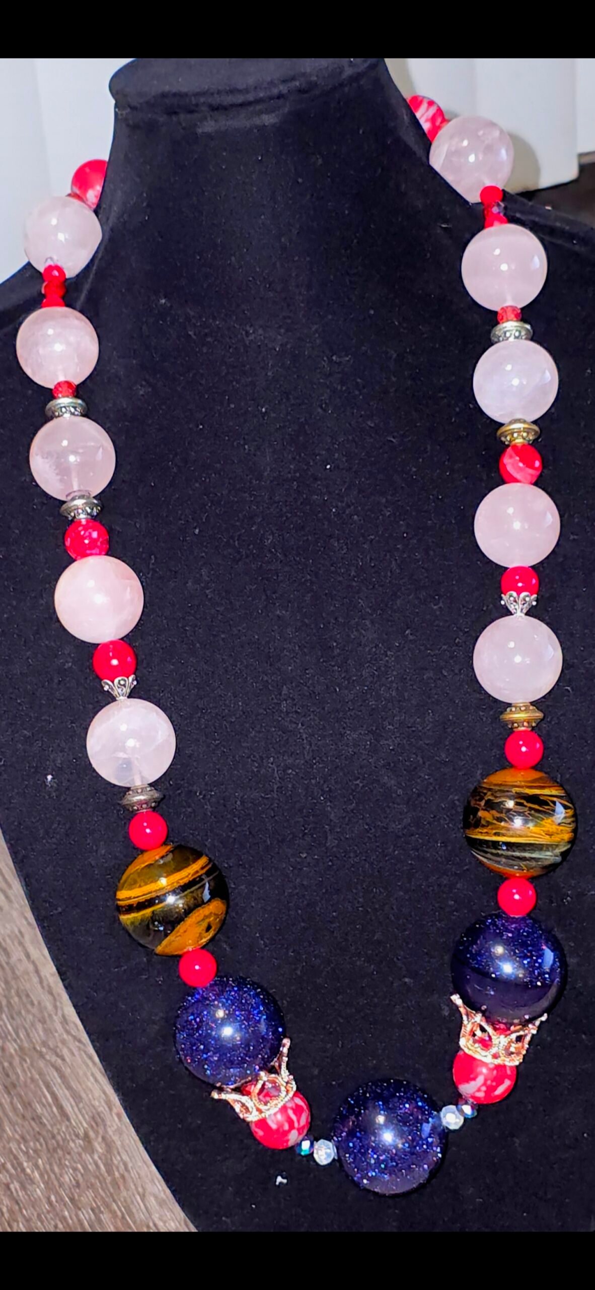 - Grade-A Natural Minerals: This strand features top-tier Rose Quartz for emotional mastery, banded Tiger’s Eye for unshakeable confidence, and vibrant Red Jasper for physical vitality. These are not mass-market chips; they are perfectly polished, oversized spheres selected for their unique natural patterns.